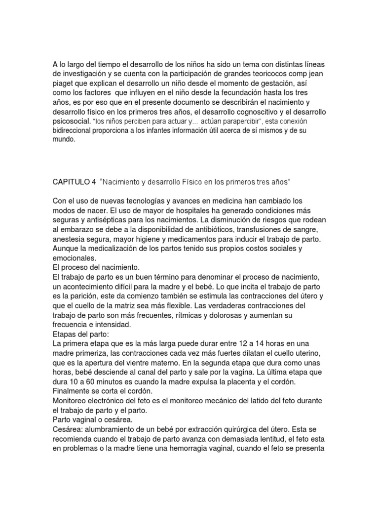 3 Pginas 7545 Visualizaciones. Resumen capitulo 3 papalia. Desarrollo Cognoscitivo tres primeros aos.