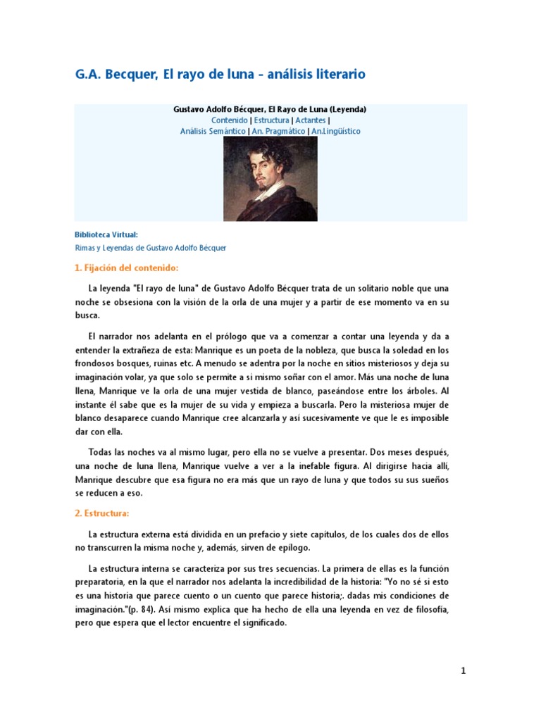 Cuando Beatriz convence a Alonso para ir a buscar su. Las Rimas de Bcquer son hoy la ms conocida de las colecciones poticas del siglo XIX. En cuanto a las leyendas vemos como temas principales la fuerza del amor y la presencia en la vida cotidiana de lo sobrenatural y maravilloso.