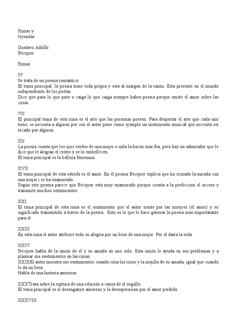 Resumen Rimas Y Leyendas Pdf Amor Poesia