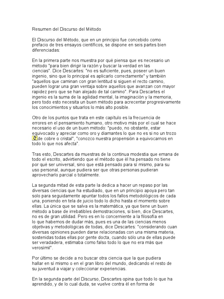 Discurso Del Metodo De Rene Descartes Resumen Por Capitulos