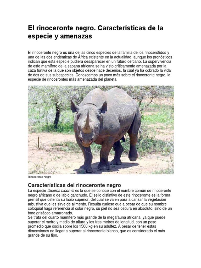 El Rinoceronte Negro Pdf Rinoceronte Organismos
